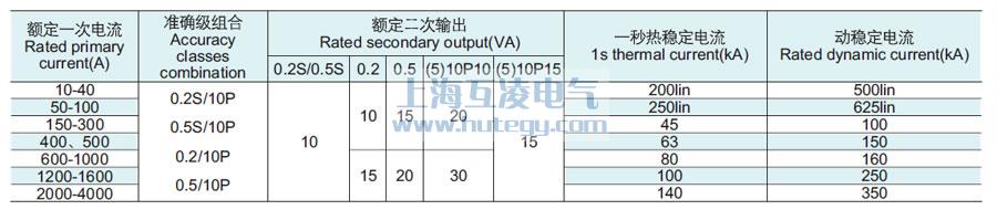 | 型號 | 額定一次電流(A) | 準(zhǔn) 確 級 | 額定輸出(VA) | 短時(shí)熱電流(Ith)(kA) | 額定動穩(wěn)定電流(Idyn)( kA) | ||||